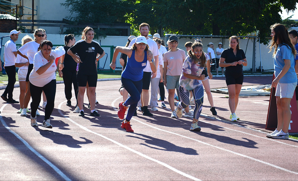 Все участники собрались вместе, что бы начать свой день с зарядки, которую провела судья Центра тестирования ГТО Милана Терещенко.